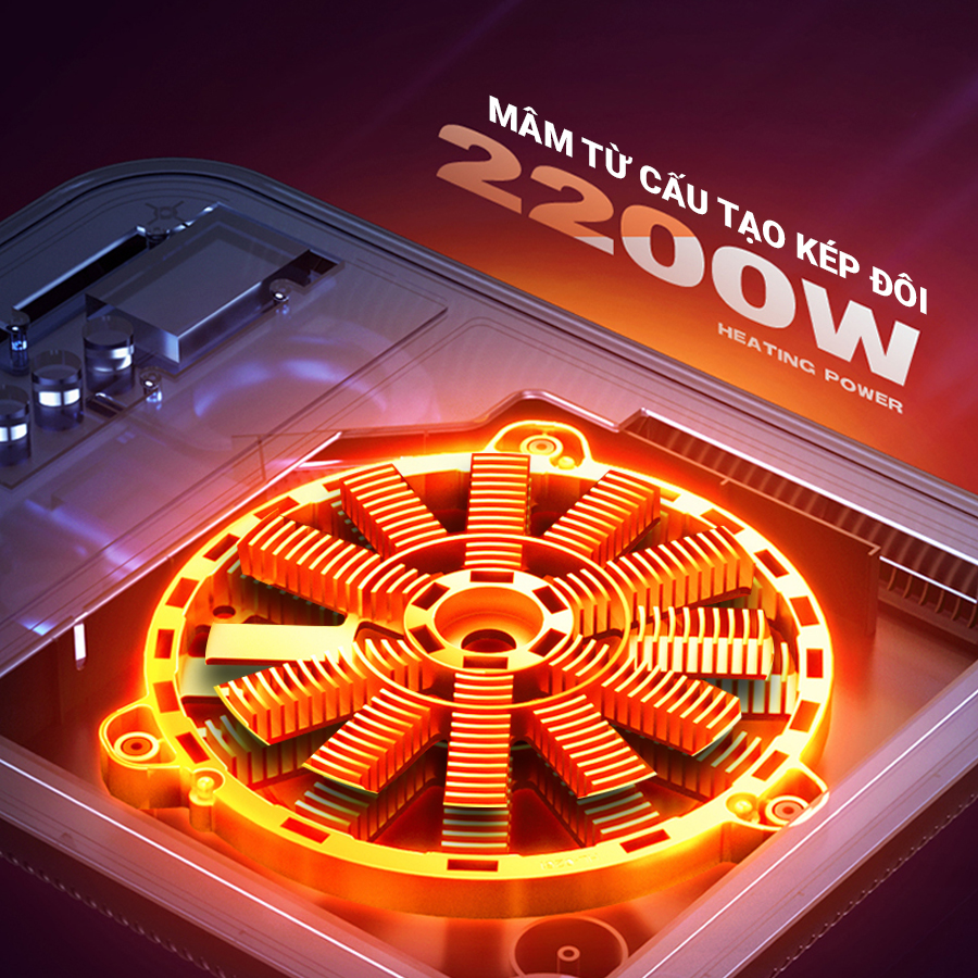 Bếp có mâm từ có cấu tạo kép đôi cho hiệu suất bếp đạt ở mức tối đa và tiêu hao năng lượng hiệu quả giúp cho khả năng nấu nướng nhanh, tiết kiệm thời gian. Ngoài ra mâm từ chất lượng cao cũng mang lại độ bền, tuổi thọ cho bếp. Điều này là điểm cộng lớn mang lại cho người tiêu dùng sự hài lòng về sản phẩm.