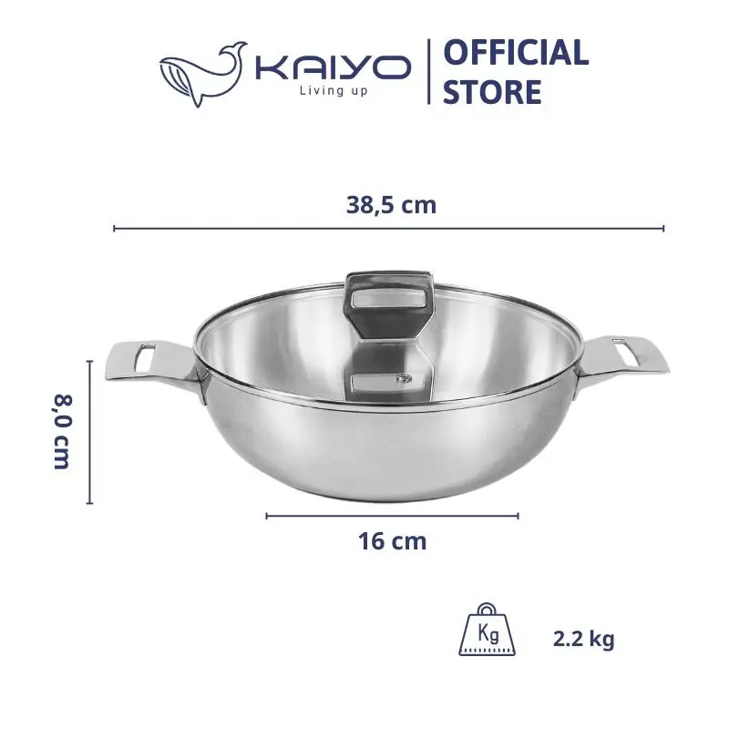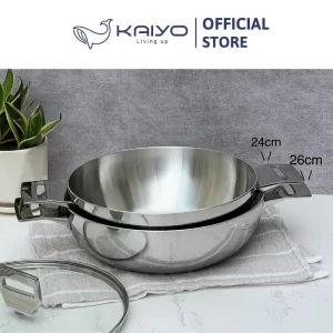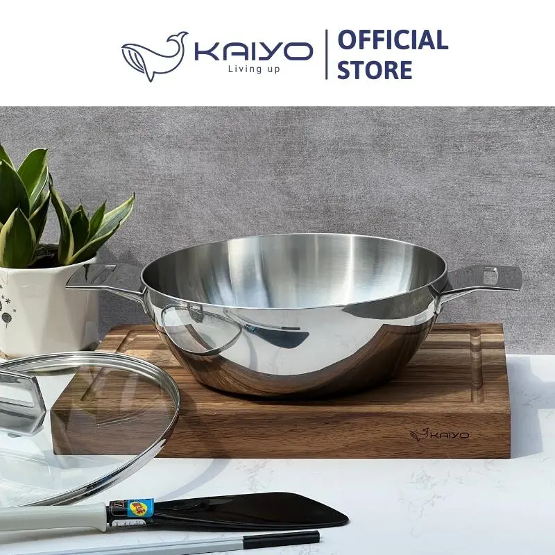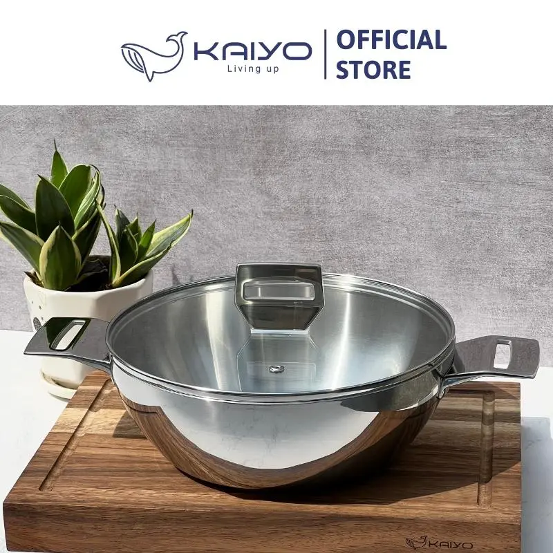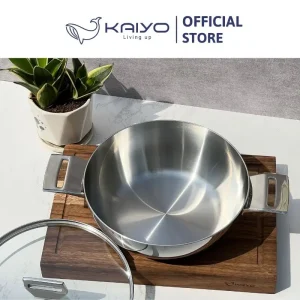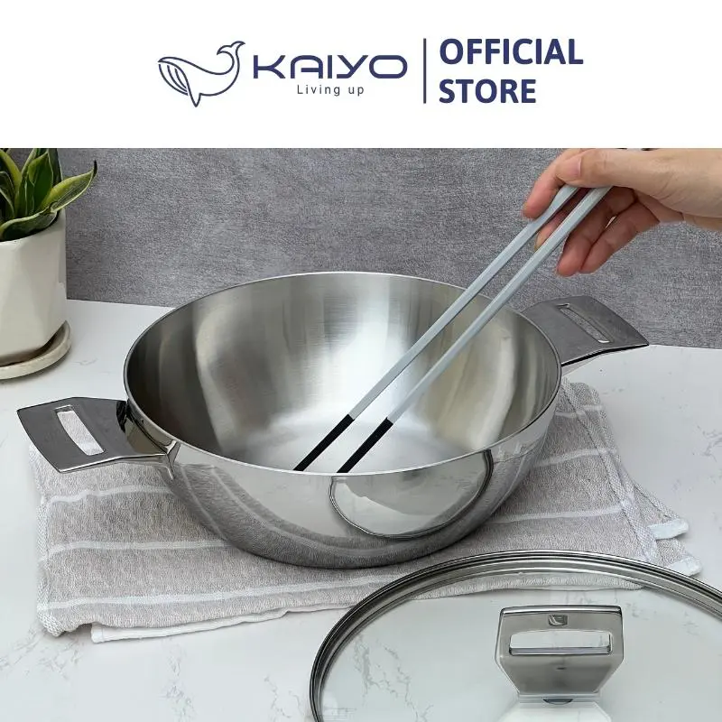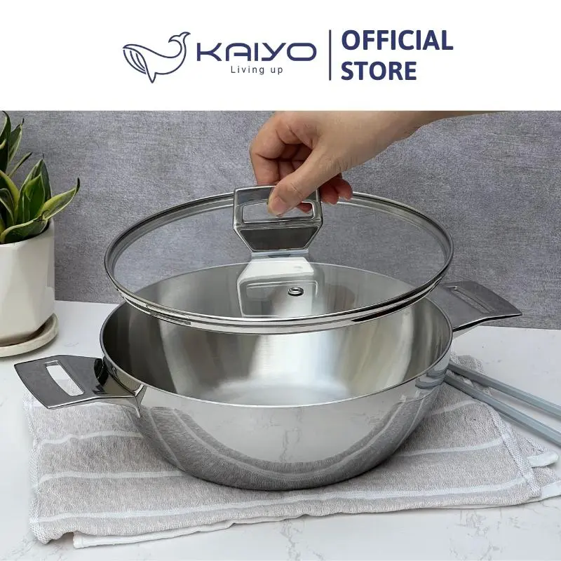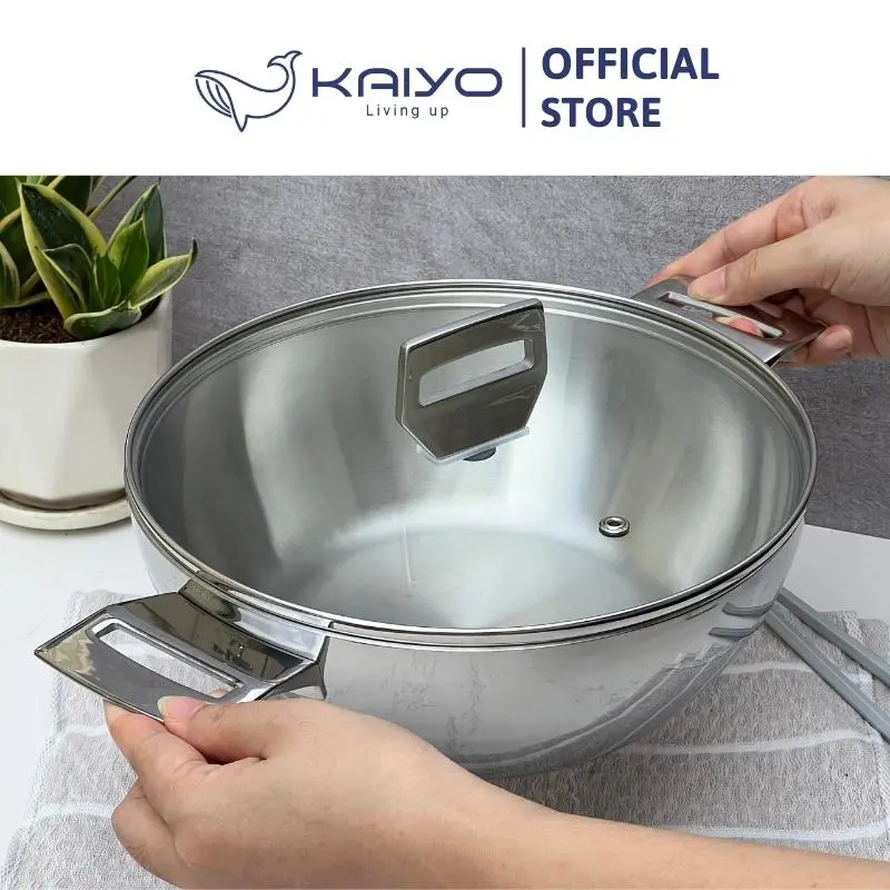 + Kiểu dáng hiện đại, sang trọng: Thiết kế hiện tại với mặt trong là inox satin, mặt ngoài là inox bóng gương cao cấp cùng tay cầm đúc đặc nguyên khối. Nồi Chảo inox Tri-Ply đáy liền Kaiyo thực sự mang lại cho không gian bếp gia đình sự sang trọng và đẳng cấp.