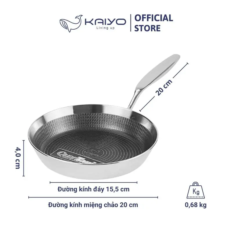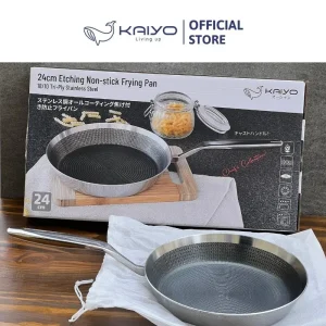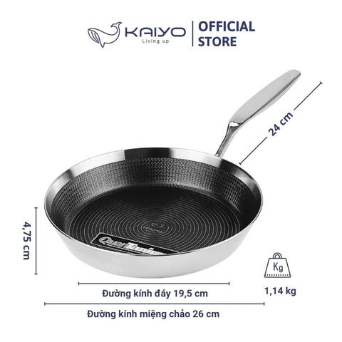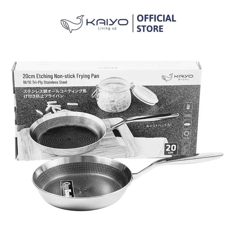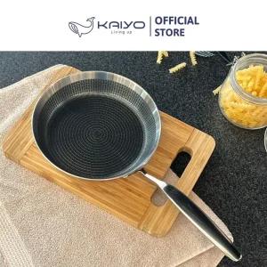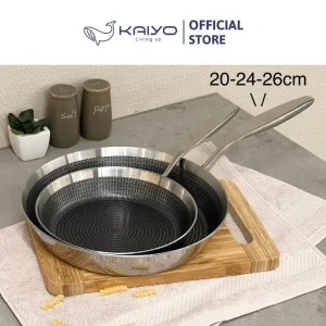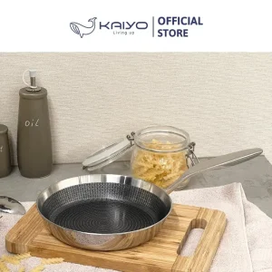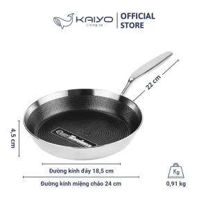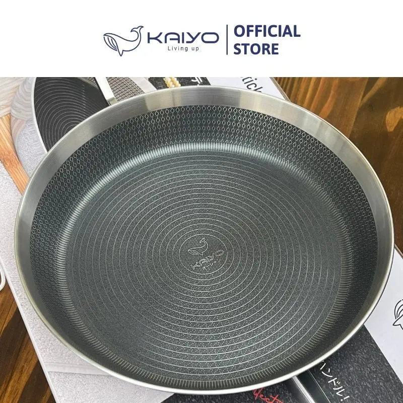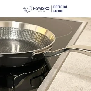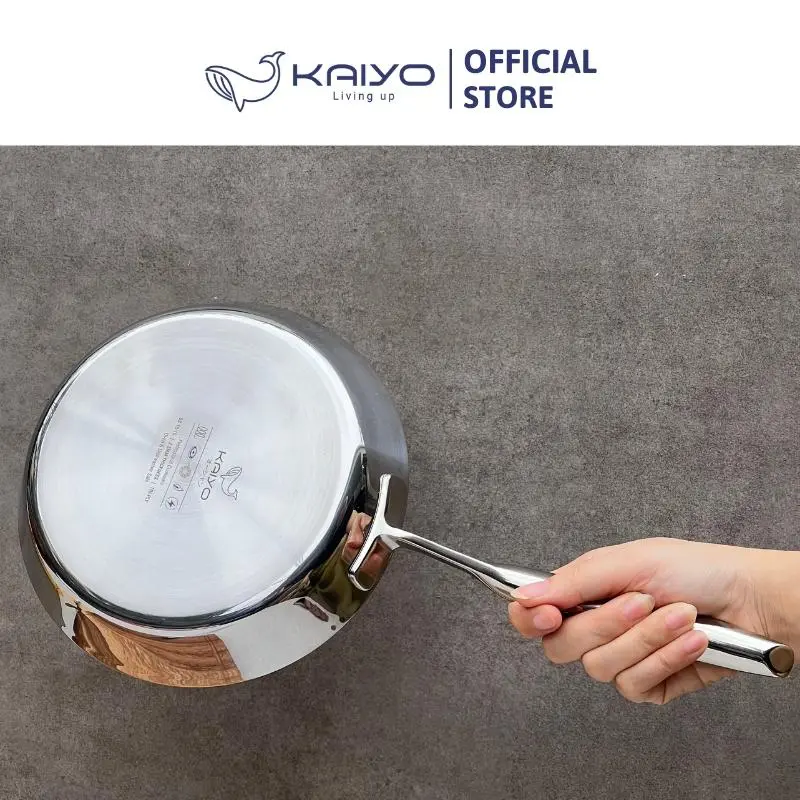 – Lớp ngoài cùng tiếp xúc với mặt bếp là inox 430 nguyên tấm cho hiệu suất bắt từ cao nhất. Nồi chảo inox Tri-Ply Kaiyo dùng trên mọi loại bếp kể cả các bếp từ khó tính, bếp điện, bếp hồng ngoại, bếp gas,….