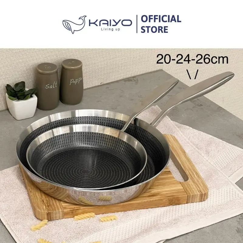 + Dùng trên tất cả loại bếp: Nồi Chảo inox Tri-Ply đáy liền Kaiyo dùng được trên tất cả thiết bị bếp (bếp gas, bếp điện, bếp hồng ngoại, bếp từ …