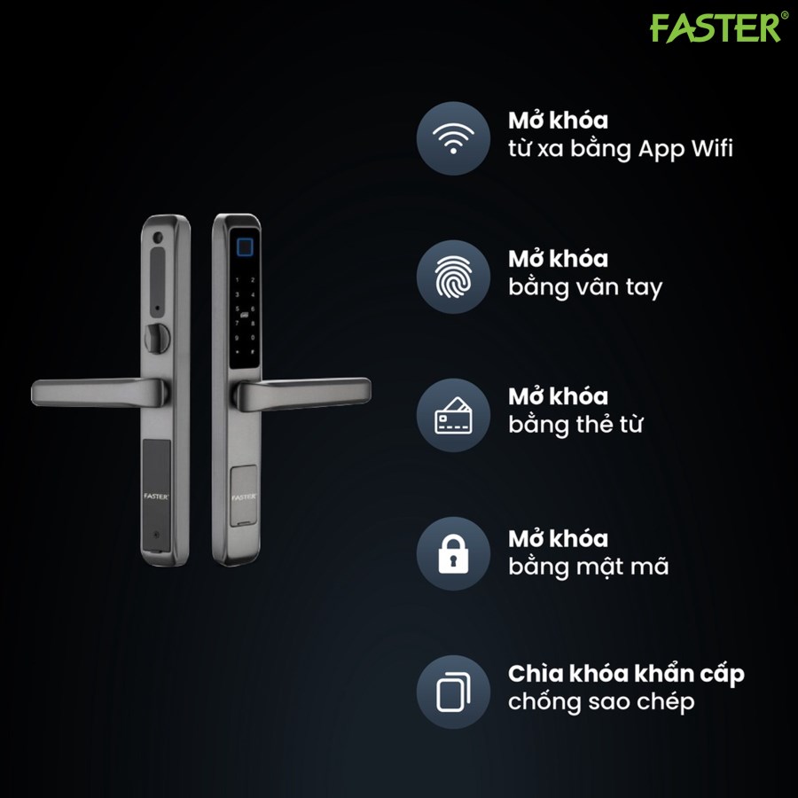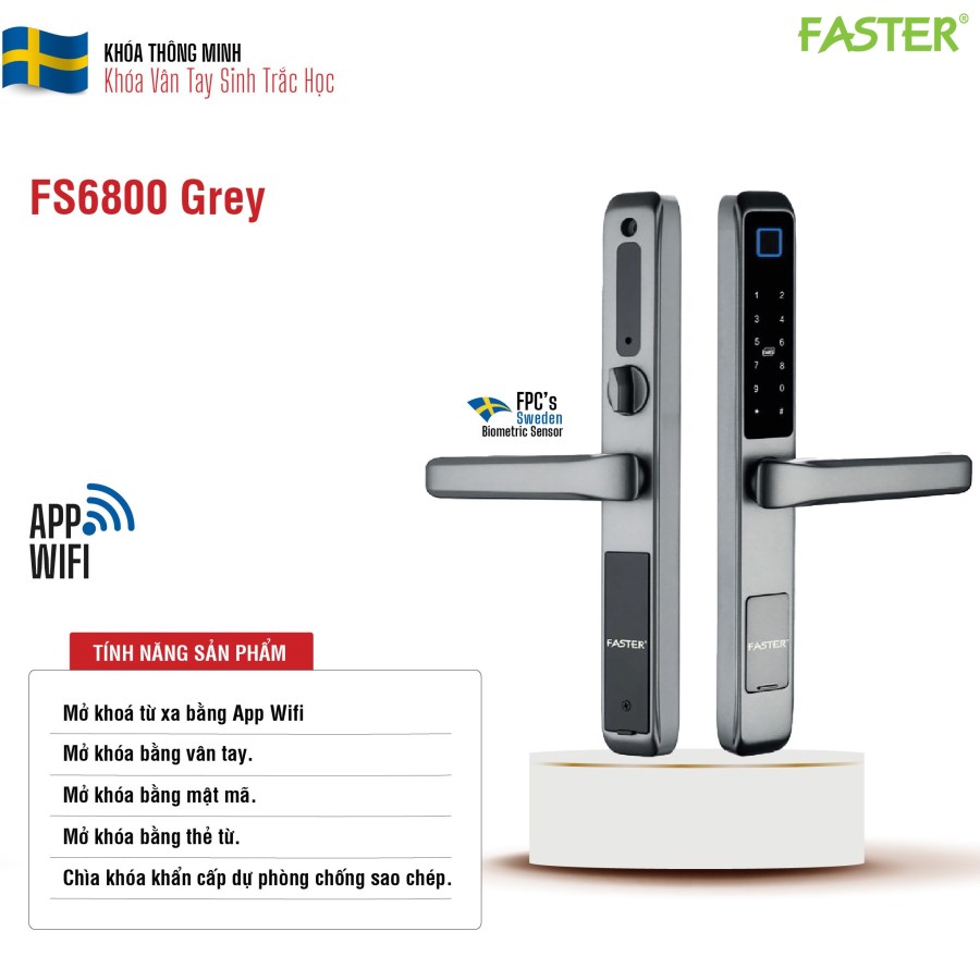 - Mở khóa bằng vân tay, công nghệ FPC Thụy Điển