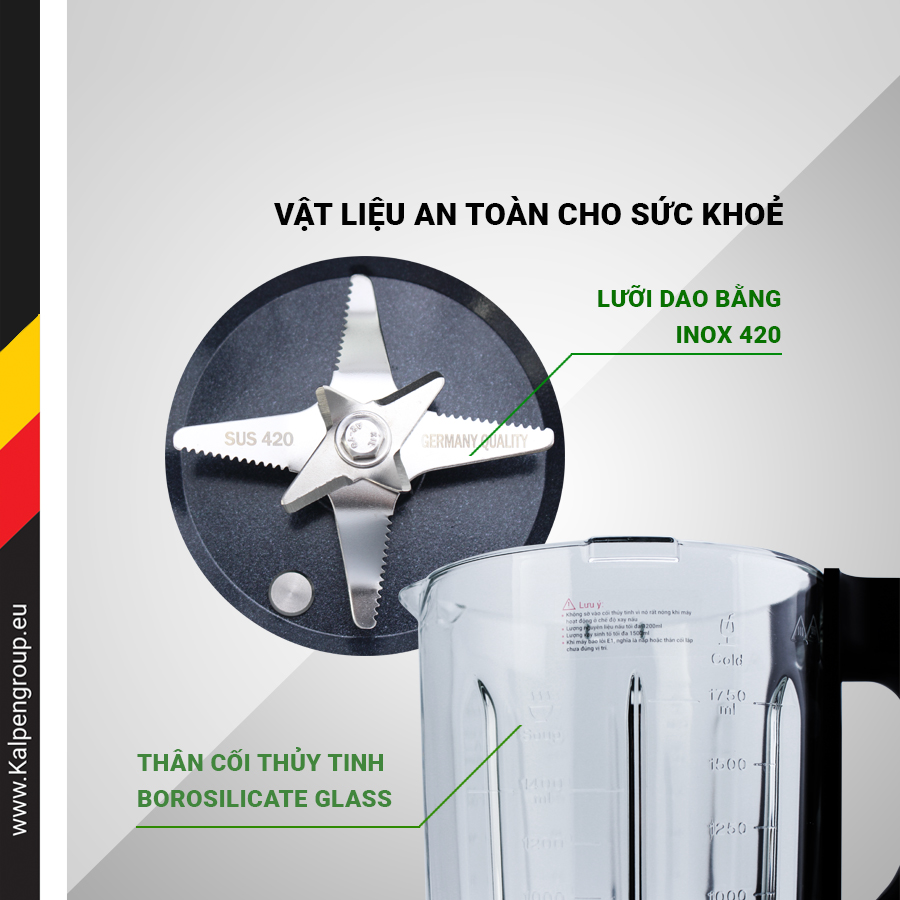– Cối máy được làm từ thủy tinh borosilicate glass với 5 lớp chắc chắn có độ co giãn nhiệt từ -20 độ C đến 150 độ C.