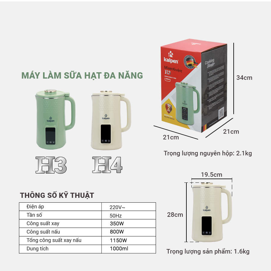 II. ĐẶC ĐIỂM, TÍNH NĂNG NỔI BẬT CỦA MÁY LÀM SỮA HẠT MINI KALPEN H3 1000ml