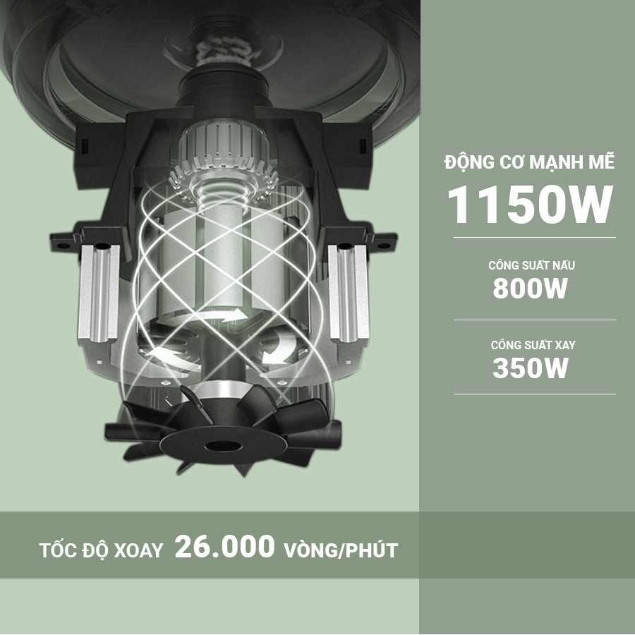 Công suất máy lên tới 350W tạo ra lực xoắn với tốc độ 26000r/phút. Tốc độ hoạt động cao giúp cho việc xay, làm mịn thực phẩm một cách dễ dàng.