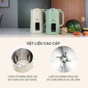 Cối xay máy sữa hạt Kalpen H3 được làm bằng inox 304 – đây là dòng inox cao cấp được ứng dụng nhiều trong sản xuất thiết bị y tế nên rất an toàn cho sức khỏe người sử dụng.