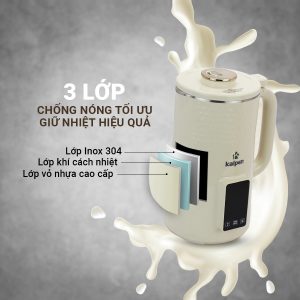 Cấu tạo thân máy 3 lớp có tác dụng chống nóng hiệu quả, an toàn cho người sử dụng đặc biệt là gia đình có trẻ nhỏ. Lớp ngoài cùng là nhựa chống nóng, lớp giữa có tác dụng ngăn cách và tạo ra luồng khí giảm nhiệt, lớp trong cùng là inox 304 an toàn cho sức khỏe.