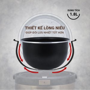 Với dung tích 1.8L, bạn có thể nấu cơm đủ cho cả gia đình một lần duy nhất, tiết kiệm thời gian và công sức. Đồng thời, công nghệ ủ ấm 3D đảm bảo cơm chín đều từ mọi góc độ, giữ nguyên độ ẩm và sốt dẻo hấp dẫn. Lòng nồi dày 2mm phủ chống dính Whitford cao cấp giúp ngăn chặn cơm dính và dễ dàng làm sạch nồi sau mỗi lần nấu. Công suất 700W giúp nấu cơm nhanh chóng và tiết kiệm năng lượng.