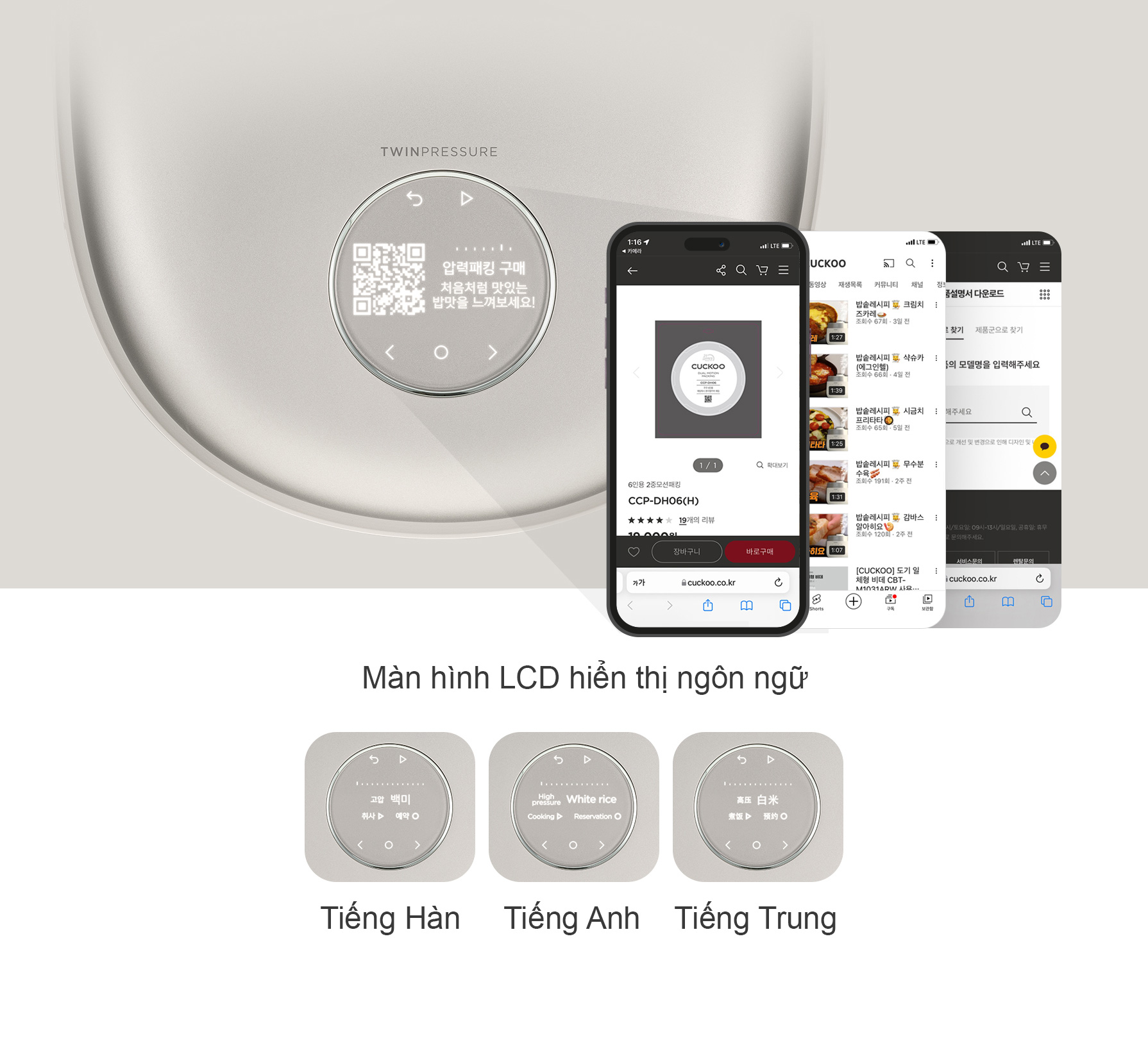 Nồi cơm điện CRP-NHTR1010FW sở hữu 3 loại ngôn ngữ Hàn, Trung, Tiếng Anh thân thiện hơn với người dùng quốc tế.