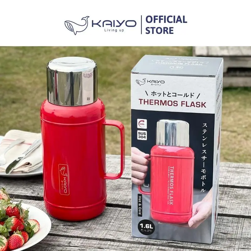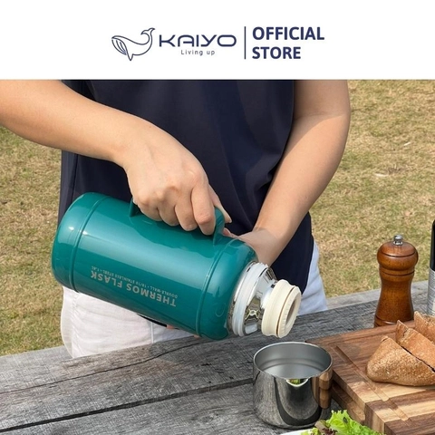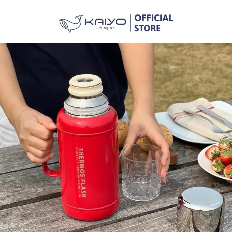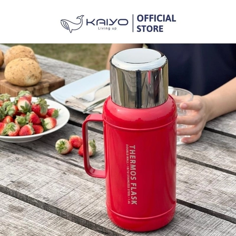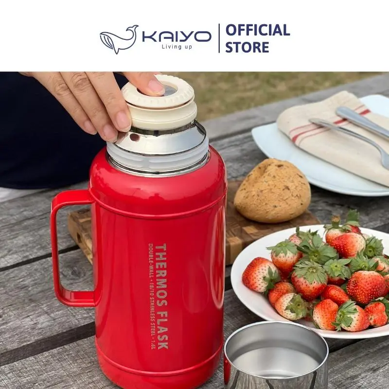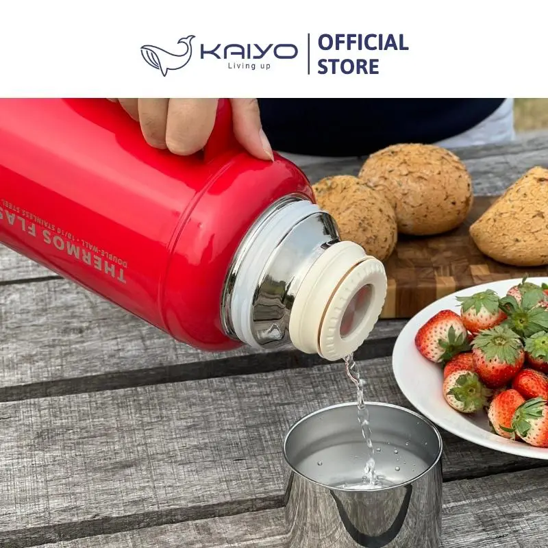 Phích giữ nhiệt inox Kaiyo được sản xuất bằng chất liệu inox 304 với công nghệ giữ nhiệt chân không 2 lớp, mở/đóng nắp 1 chạm, nắp vặn xoáy với gioăng silicone bền chắc, giúp giữ nhiệt nóng/lạnh suốt 24h