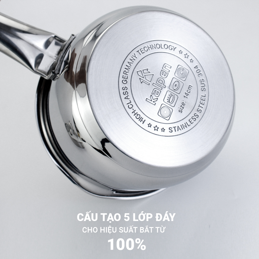 Quánh Inox 5 đáy Kalpen Lermat L14 được làm từ Inox 304. Đây là loại inox cao cấp thường được dùng trong thiết bị y tế, an toàn tuyệt đối khi tiếp xúc với thực phẩm ở nhiệt độ cao, bảo vệ sức khỏe người sử dụng.